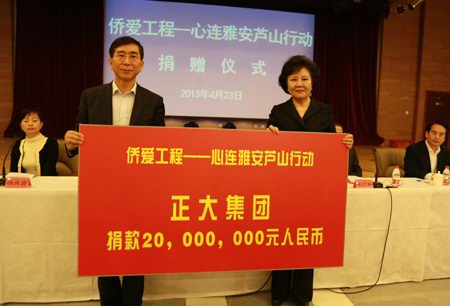 正大為雅安災區(qū)捐款2000萬元